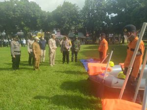 Dalam kesempatan tersebut Kapolres Serang Kota didampingi  Wakapolres, Kabagops, dan Para unsur Forum Komunikasi Pemerintah Daerah Kota Serang melakukan pemeriksaan peralatan dan perlengkapan yang diperlukan seperti perahu karet, alat penerangan, pelampung, gergaji mesin, serta peralatan lainnya. Rillis : ( Hum Polda Banten ).