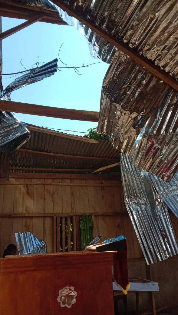 Menurut penuturan anggota Jemaat “Dinding, rangka, kursi, mimbar, meja, dan lantai gereja ikut tertimpa pohon, sehingga jemaat tidak dapat menggunakan tempat ibadah” Ungkap Arjun
