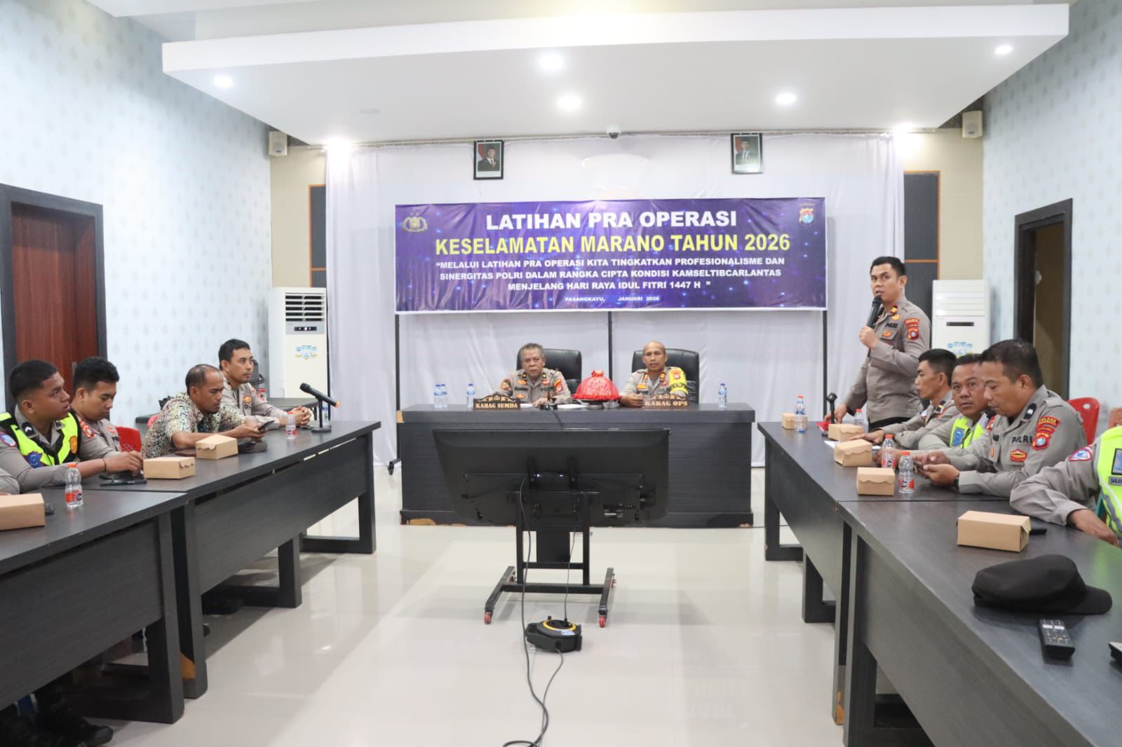 PASANGKAYU – Cyberpena.com — Polres Pasangkayu melaksanakan Latihan Pra Operasi (Latpra Ops) Keselamatan Marano Tahun 2026 yang berempat di Aula Rupatama, Jum’at (30/01/2026).